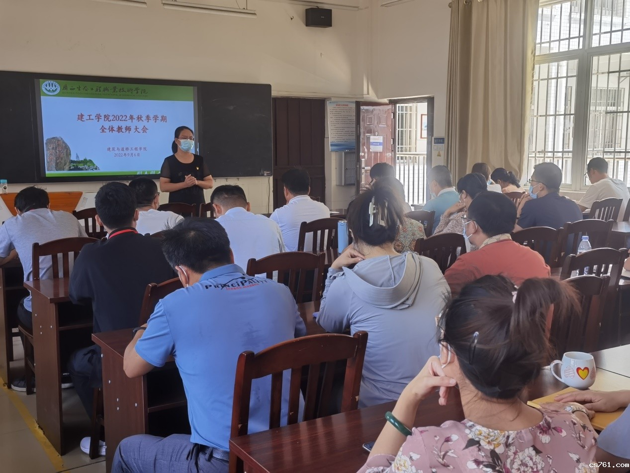 为推进秋季学期各项工作落实,9月6日下午,建工学院在西区二号教学楼314教室召开2022年秋季学期全体教师大会。会议由建工学院院长肖万娟主持,建工学院全体教师参加会议。