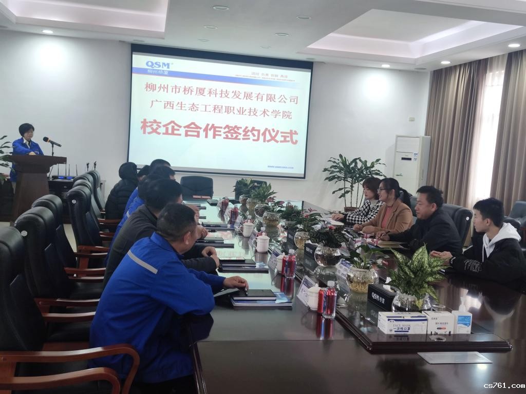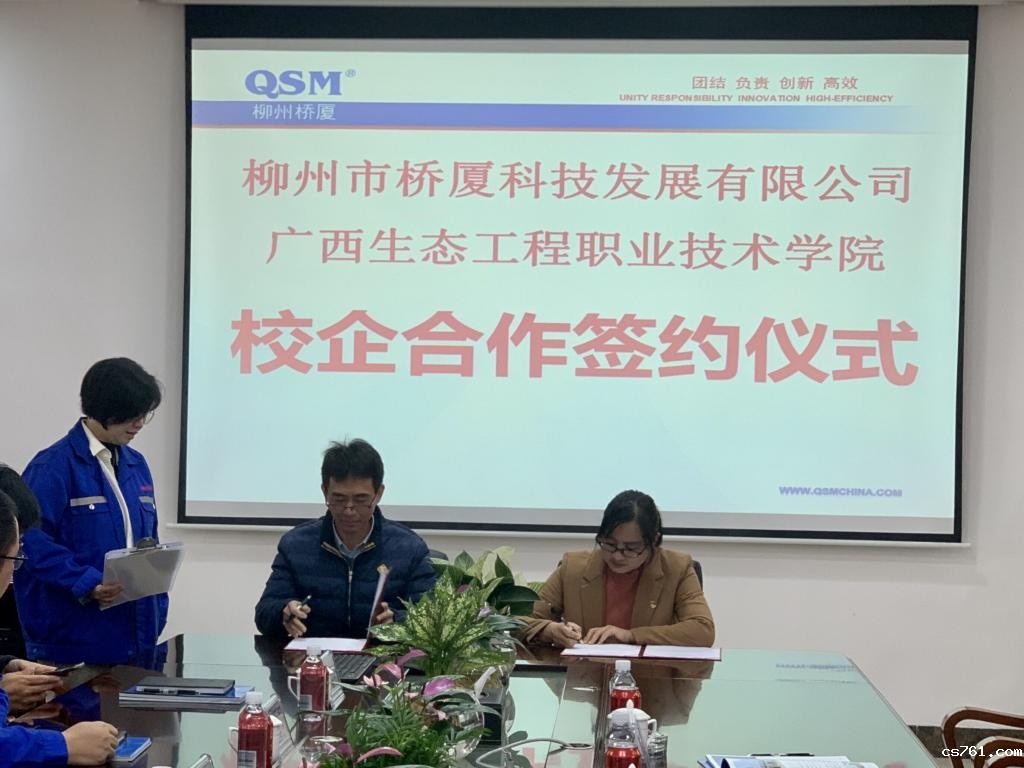 2月17日,星空网页登录建筑与道桥工程学院与柳州市桥厦科技发展有限公司成功举行校企合作签约仪式。柳州市桥厦科技发展有限公司副总经理黄弘生及公司骨干技术人员、广西生态职院建工学院党总支副书记姚紫燕及教师代表出席本次仪式。