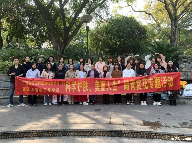 为表彰学院全体女教师在工作中取得的优异成绩,充分发挥“半边天”的作用;同时也为了丰富女教师的精神生活和业余生活,以便更有利于女教师提高工作效率,增强团队意识。学院工会特联合柳州市美嘉医疗举办“科学护肤、美丽人生”踏青赏花专题活动,为全体姐妹们提供一个“与花为伴”的舞台,让大家在辛勤工作之余享受花样年华,展示我院女教职员工优雅情怀和良好的精神风貌。