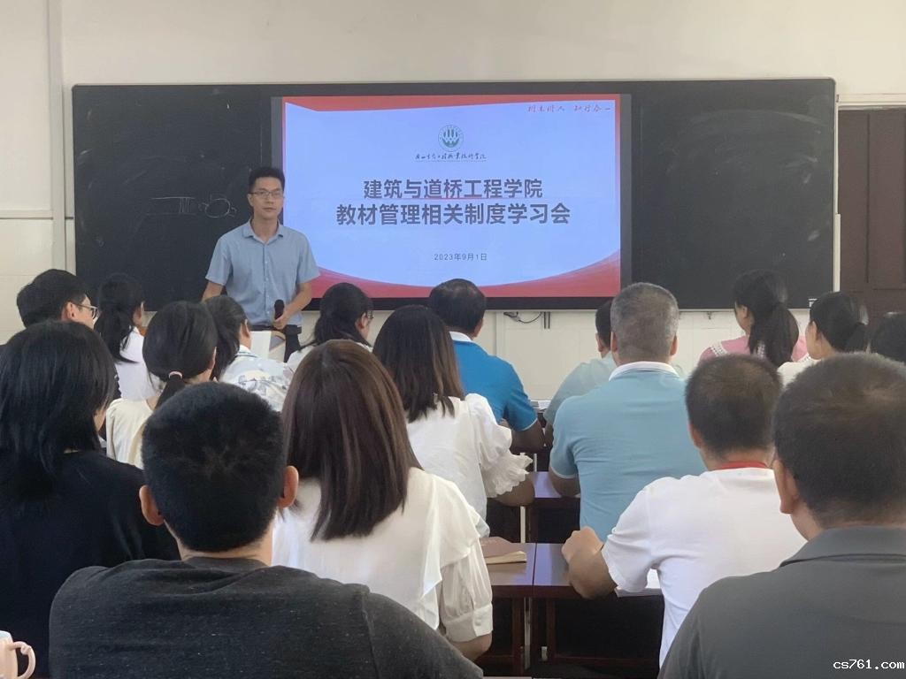 为进一步深化“三教”改革,加强学校教材建设与管理工作,充分发挥教师在教材改革中的主导作用,9月1日下午建工学院组织全体教师集中学习教材管理相关制度,会议由副院长曾大艇主持,全体教师参加。