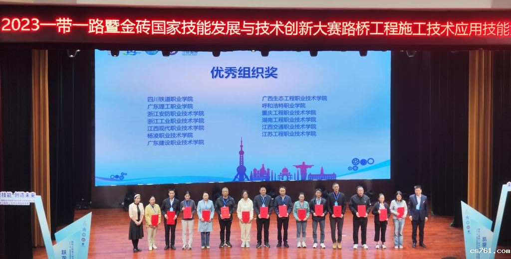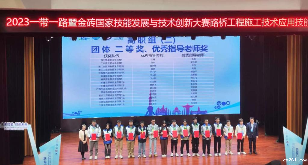10月21日上午,2023年第七届一带一路暨金砖国家技能发展与技术创新大赛-路桥工程施工技术应用技能竞赛决赛在陕西交通职业技术学院通远校区成功举办。高职组共有来自全国28个省(区)、123所高职院校、192支代表队参加了本场决赛。经过赛前认真备赛、赛中激烈角逐,最终我院学生农佳铭、陈兴源、粟璟鸿团队凭借出色的表现荣获大赛团体二等奖,指导老师曾大艇、高帷峻荣获优秀指导老师奖,学校荣获优秀组织奖。