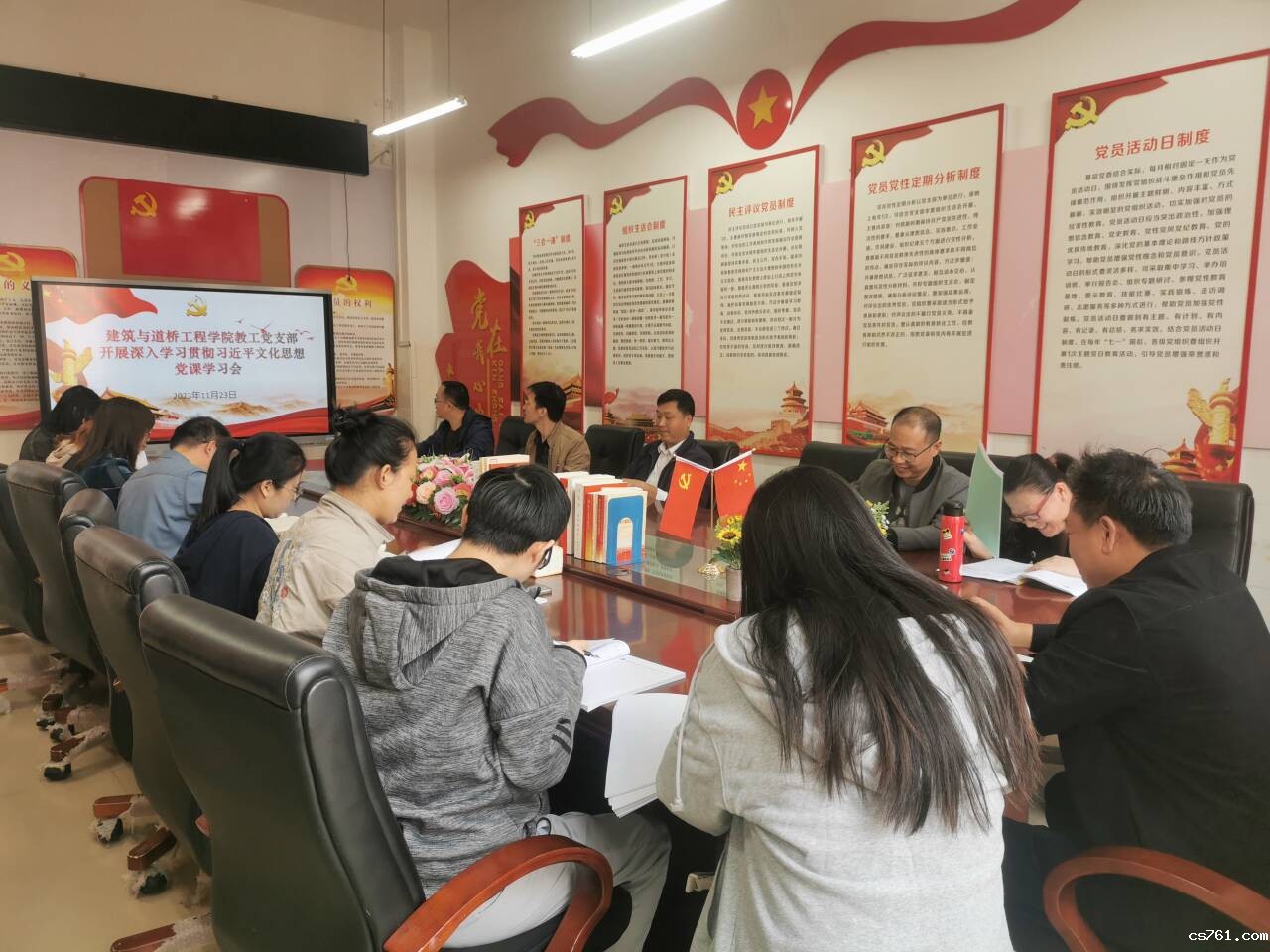 11月23日,建工学院教工党支部在西2310开展深入学习贯彻习近平文化思想,推动学校建设高质量发展主题党课,支部书记韦永豪同志讲党课。