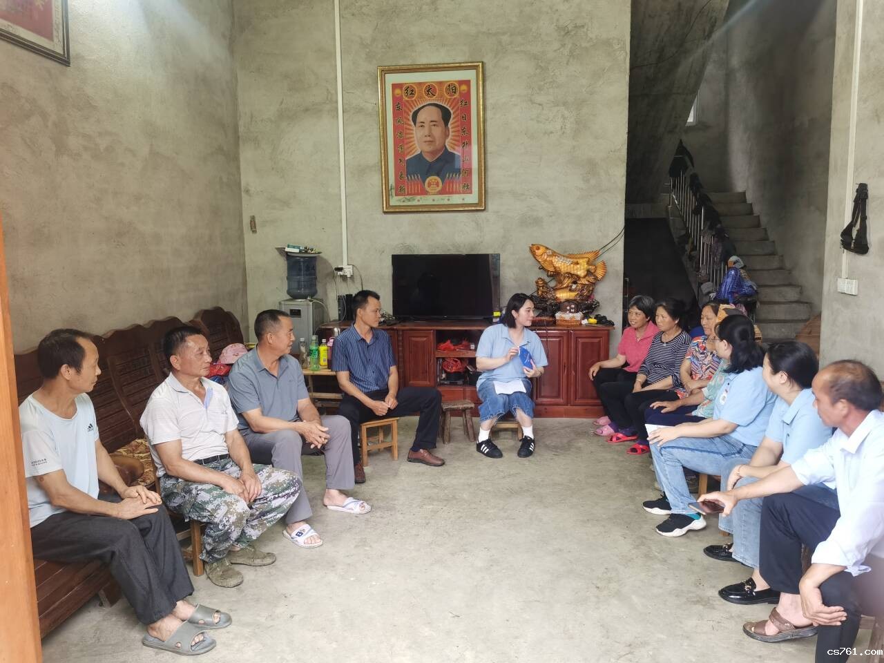 座谈结束后,肖万娟书记一行人跟着村委来到村民家开展防诈宣传活动,覃诗涵同志把电信诈骗常用的套路用案例解析的形式讲给村民听,并讲述了发生在身边的电信诈骗案件,让村民们以案为鉴,提高警惕,严防诈骗陷阱。