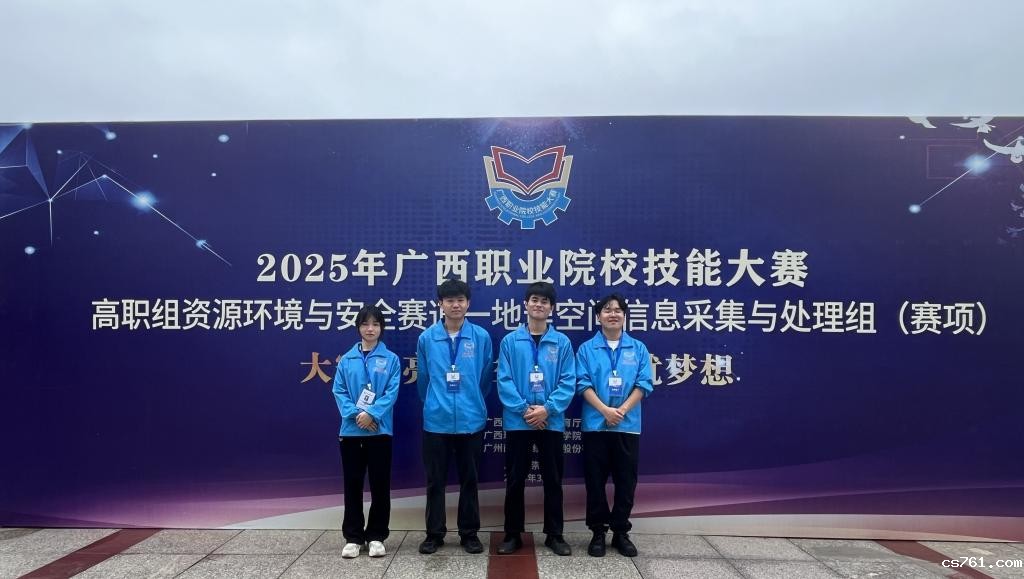 2025年3月16日,由广西壮族自治区教育厅主办的2025年广西职业院校技能大赛高职组《地理空间信息采集与处理》赛项在广西理工职业技术学院圆满落幕。来自全区高职院校的21支队伍齐聚一堂,展开激烈角逐。我院学生林国新(轨道221)、黄允佰(高铁221)、李婵婵(智建242)、孙鹏雨(高铁242)组成的代表队,在蒋中洲、颜闽两位老师的精心指导下,凭借扎实的专业技能和出色的团队协作能力,荣获该赛项铜牌,为学院赢得了荣誉,充分展现了我院在产教融合与协同创新方面的育人成果。