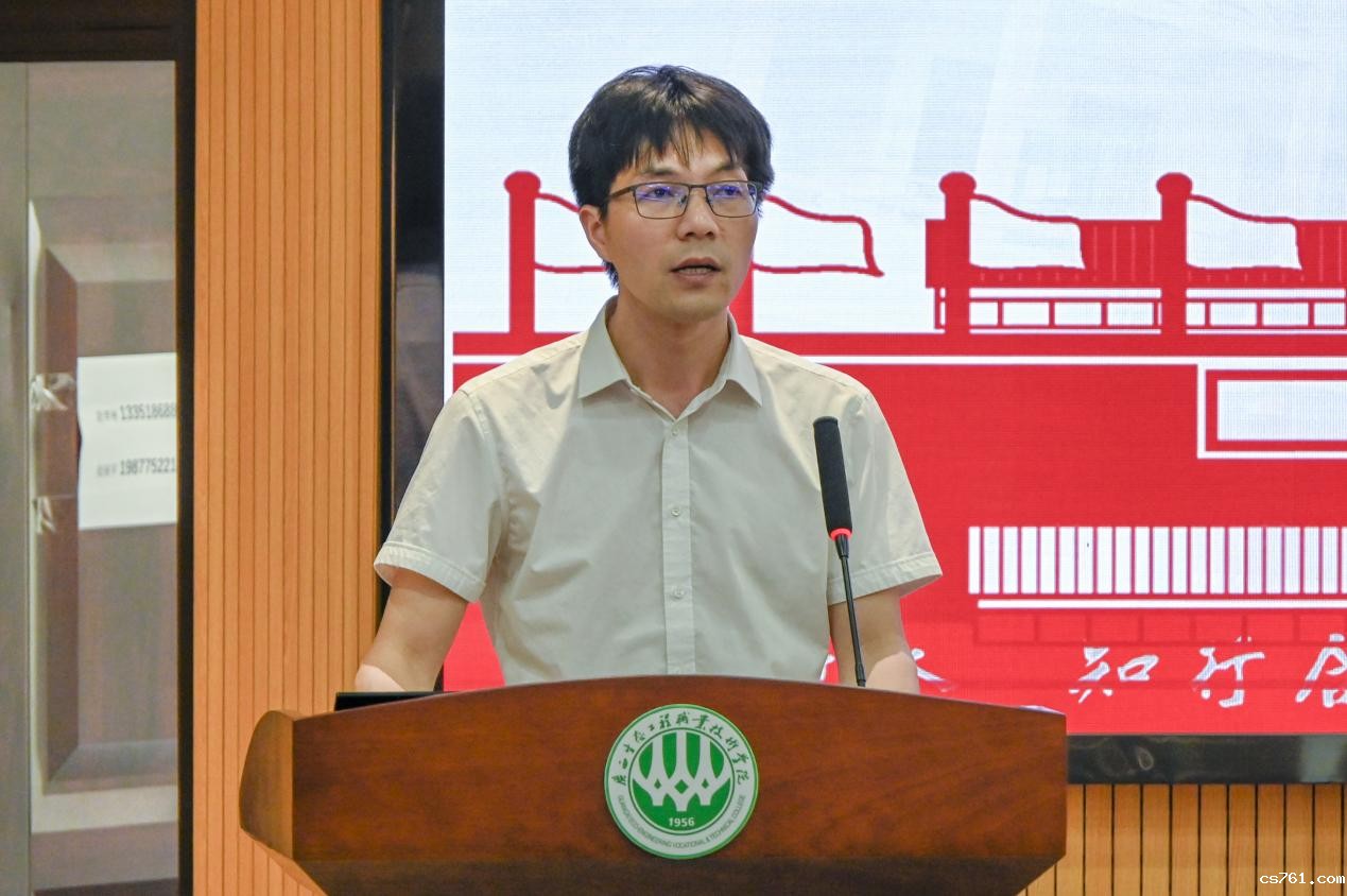 曾大艇随后介绍了校赛的有关情况,包括参赛项目、赛程安排及奖项设置等,为同学们提供了清晰的参赛指南。接着,去年在区赛中获得银奖的两个优秀团队——旅游学院的《螺韵飘香——非遗美食文化的传承者》团队和建工学院的《智绿新材——新型建筑水泥的开拓者》团队,分别由陈业新和何依娇同学分享了他们的经验与项目成果,为在场的同学们带来了宝贵的实战经验与启发。
