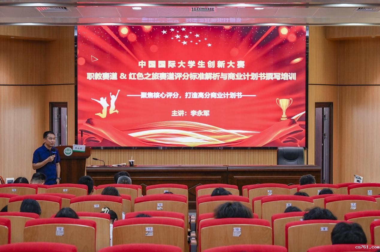 最后,广西商聚企业管理咨询有限公司总经理李永军进行专题培训——《商业计划书撰写技巧培训》。李永军作为资深创业导师,多次担任创业大赛评委,他结合自身丰富的经验,为同学们详细讲解了商业计划书的撰写要点和技巧,提升了同学们备战大赛的针对性。