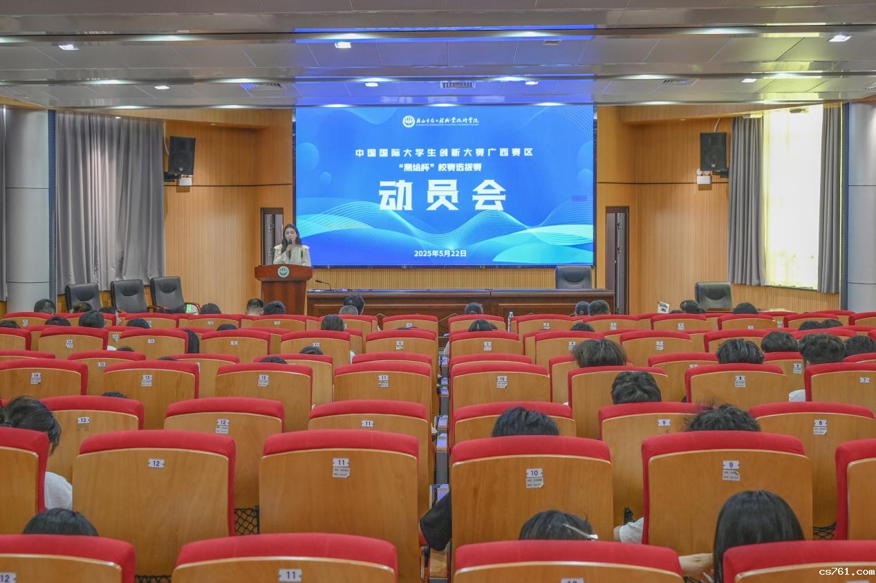 2025年5月22日下午,中国国际大学生创新大赛广西赛区“测绘杯”校赛动员大会在求实报告厅隆重举行。本次动员大会旨在深入贯彻落实党的二十大精神和习近平总书记对大学生创新创业的重要指示,推动创新创业教育改革,助力创新驱动发展战略。学校招生就业处副处长黄秋婷、广西商聚企业管理咨询有限公司总经理李永军、建工学院副院长曾大艇等各二级学院分管创业的领导出席了本次大会,各二级学院教师代表和学生代表也齐聚一堂,共同见证这一重要时刻。