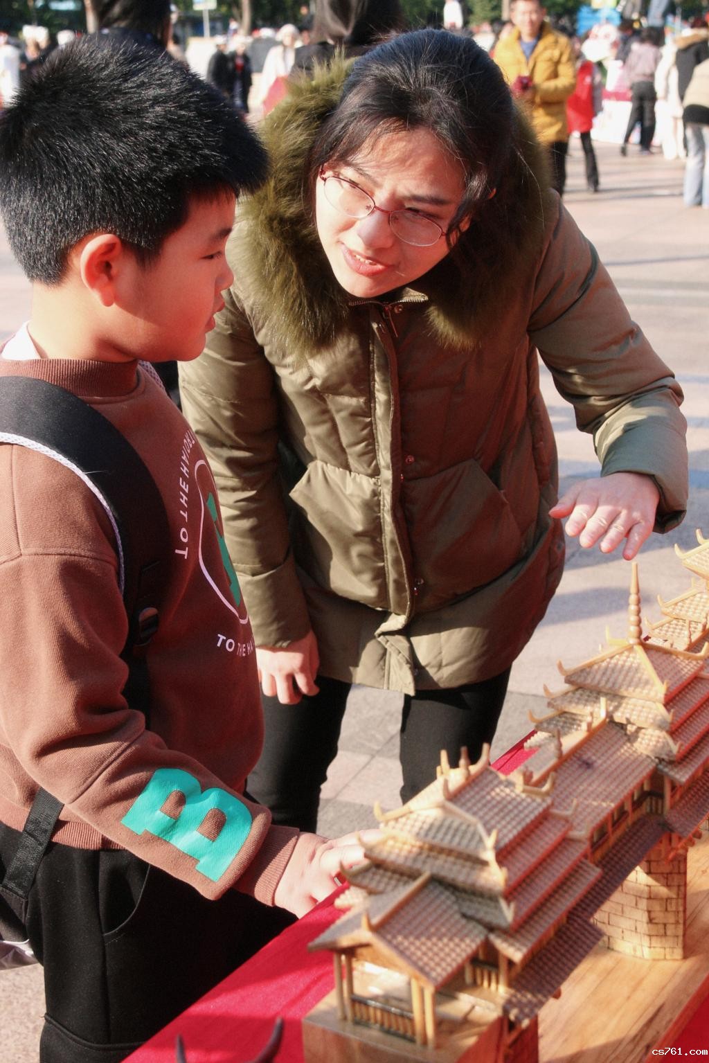 在本次汇报展中,建筑与道桥工程学院负责木结构建筑模型成果展示。木结构建筑模型展区分为展览区与体验区,在展览区展示了木结构代表性建筑:鼓楼、风雨桥、吊脚楼民居以及部分榫卯结构、墨诗文等,展品丰富,做工精巧。在体验区,广大市民能够体验拆装榫卯结构,在体验的过程中体会木构建筑不耗费一颗钉子即可建成并安全牢固的奥妙。活动现场,我院邓梨方老师、梁银明老师及学生志愿者们热心地为广大市民讲解侗族木构建筑营造技艺,有关于鼓楼、风雨桥的小故事及我国民族文化。