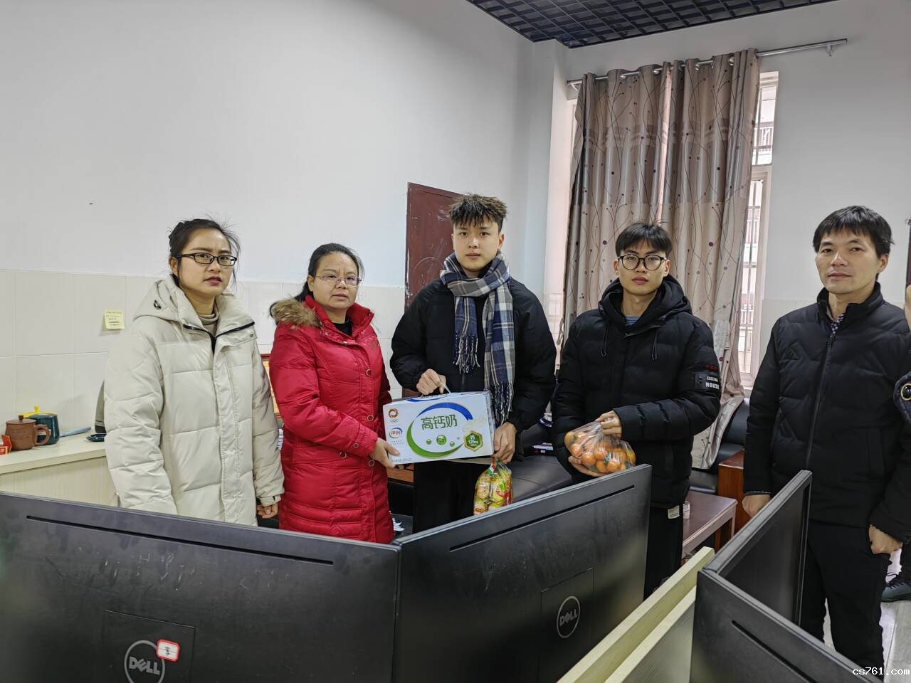 图3给留校备赛学生送去水果、牛奶等慰问品