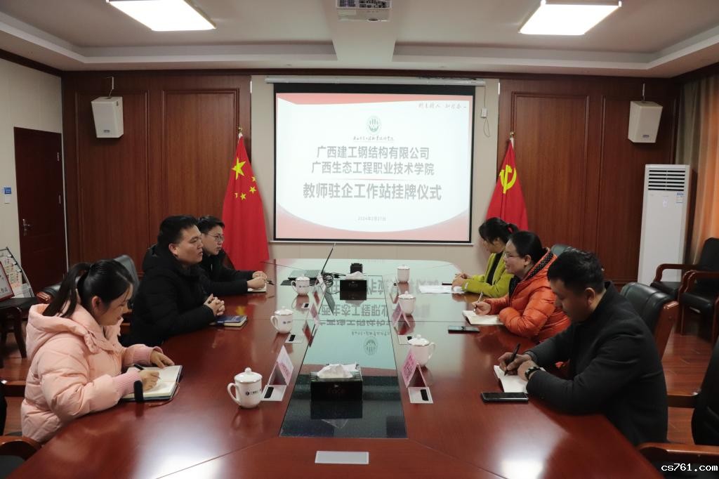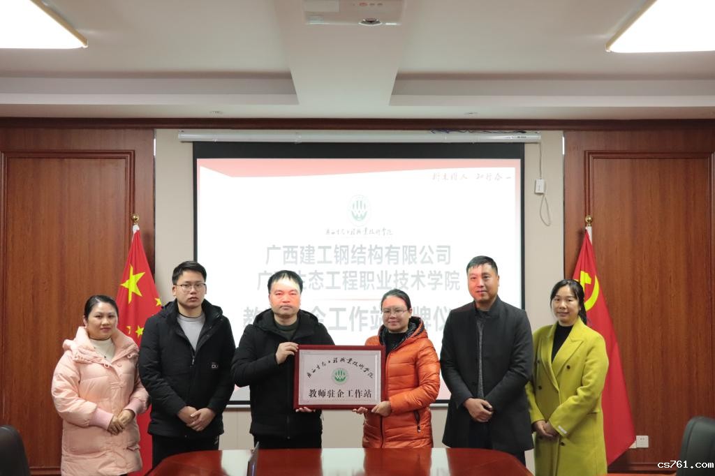 为加强与企业建立更加紧密的合作关系,2月27日,建筑与道桥工程学院院长肖万娟、副院长刘冶敏到合作企业广西建工钢结构有限公司走访,洽谈深度合作事宜,并举行了“教师驻企工作站”挂牌仪式。