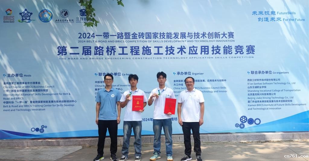 8月20-22日, 2024一带一路暨金砖国家技能发展与技术创新大赛第二届路桥工程施工技术应用赛项(BRICS-ST-028)全国总决赛,在山东交通职业学院隆重举行。本次路桥赛项决赛,历经覆盖全国665所院校的校园赛和区域选拔赛,最终决出来自全国各地并包括国际选手在内的千余名选手,共计282支队伍同台竞技。经过赛前认真备赛、赛中激烈角逐,最终我院参赛学生李先泽、黄明乐团队凭借出色的表现荣获大赛团体三等奖,充分展现出了新时代路桥施工技术人才的职业风采。