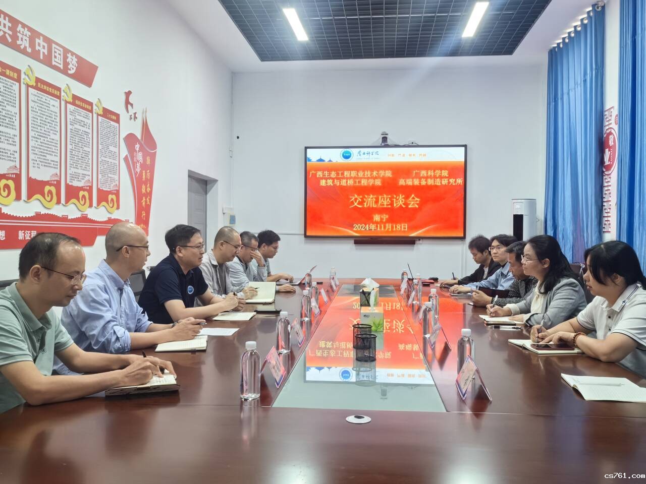 11月18日,建筑与道桥工程学院党总支书记、院长肖万娟、绿碳建造产业学院执行院长王小勇等一行6人前往广西科学院高端装备制造研究所调研交流。广西科学院高端装备制造研究所所长王晓琳组织召开工作座谈会。