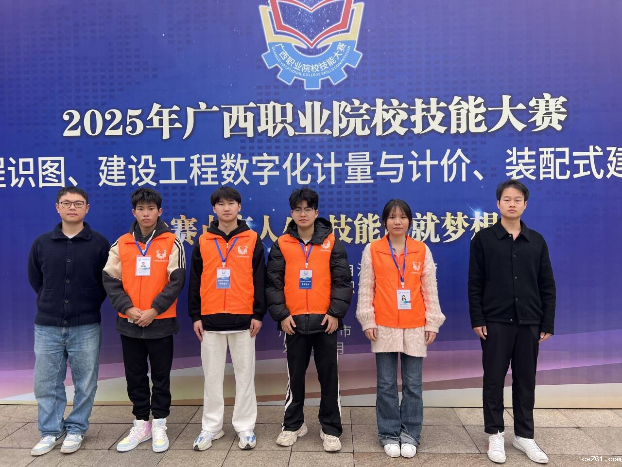 2025年3月11日,在广西职业院校技能大赛《建筑工程识图》赛项中,我院学子奋勇拼搏、再创佳绩。由梁新禧(高铁233班)、吴逢少(高铁232班)、颜可媛(建管231班)、蓝祥瑞(建筑231班)四位同学组成的参赛团队,凭借扎实的专业功底和默契的团队协作,从全区21支参赛队中脱颖而出,以小组成绩排名第3的优异成绩斩获广西区银奖。