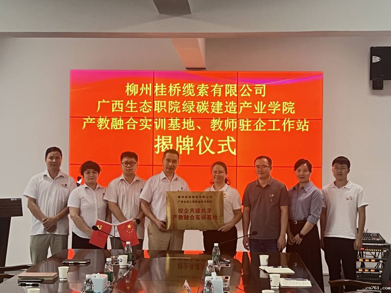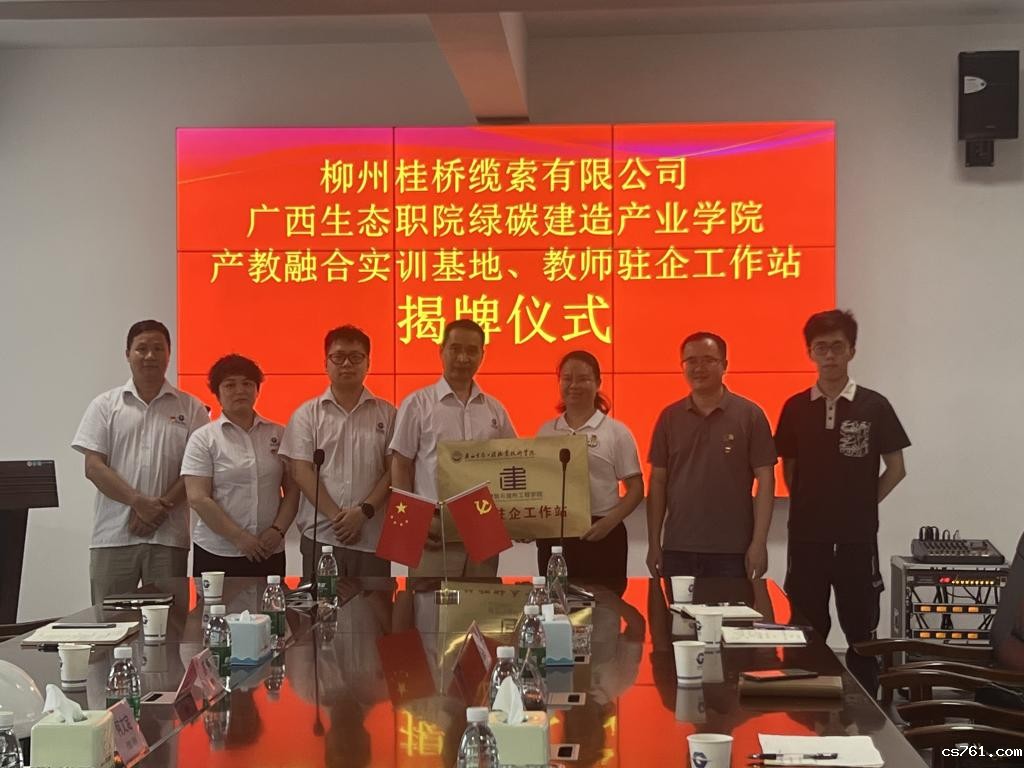 2024年4月17日,绿碳产业建造学院赴产业学院成员单位柳州市桂桥缆索有限公司授予产教融合实训基地、教师驻企工作站荣誉牌勋并举行揭牌仪式,建工学院院长肖万娟,桂桥有限公司董事长苏桥以及绿碳建造产业学院办公室成员和桂桥有限公司主要部门负责人参加活动。