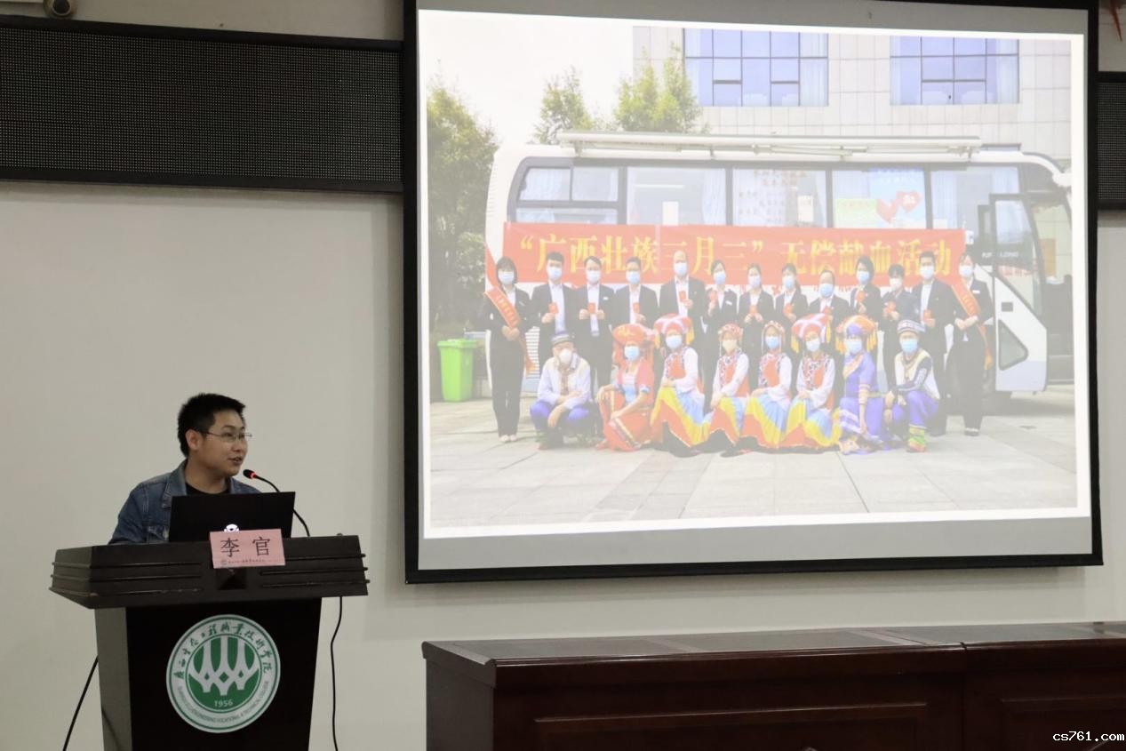 本次分享会邀请到的主讲人是我们星空网页登录造价131班的李官,现为广西壮族自治区国有维都林场团委委员、审计中心科员,来宾市无偿献血志愿服务队副队长。他热心公益事业,积极参与和宣传无偿献血志愿活动,先后获得全国无偿献血奉献奖铜奖,捐献造血干细胞证书,2018年度来爱市无偿献血优秀志愿者,以及被授予第二十三届“广西青年五四奖章”。李官学长在分享会上,结合自身的成长、工作、生活经历,讲述从毕业后工作的收获、感悟和困惑,利用自己的专业知识和工作经历为同学们排忧解难。
