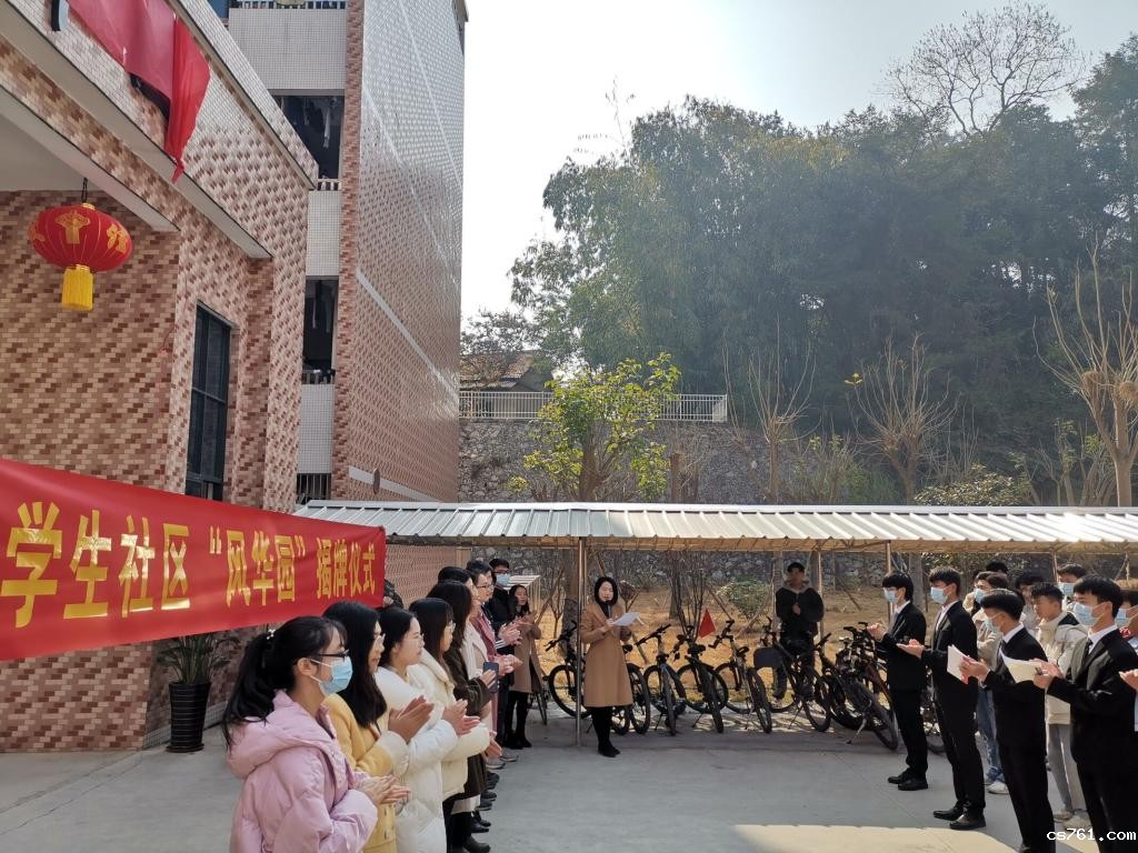 1月15日11:30,建筑与道桥工程学院和汽车与信息工程学院在东区3、4栋宿舍前举行共建学生社区“风华园”揭牌仪式。汽信学院党总支书记、院长孔丽云,建筑与道桥工程学院党总支副书记、院长肖万娟,党总支副书记姚紫燕,汽信学院和建工学院学生科科长、团委书记,辅导员、班主任及30名学生代表参加了此次仪式,仪式由建工学院梁银明主持。