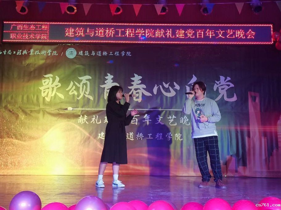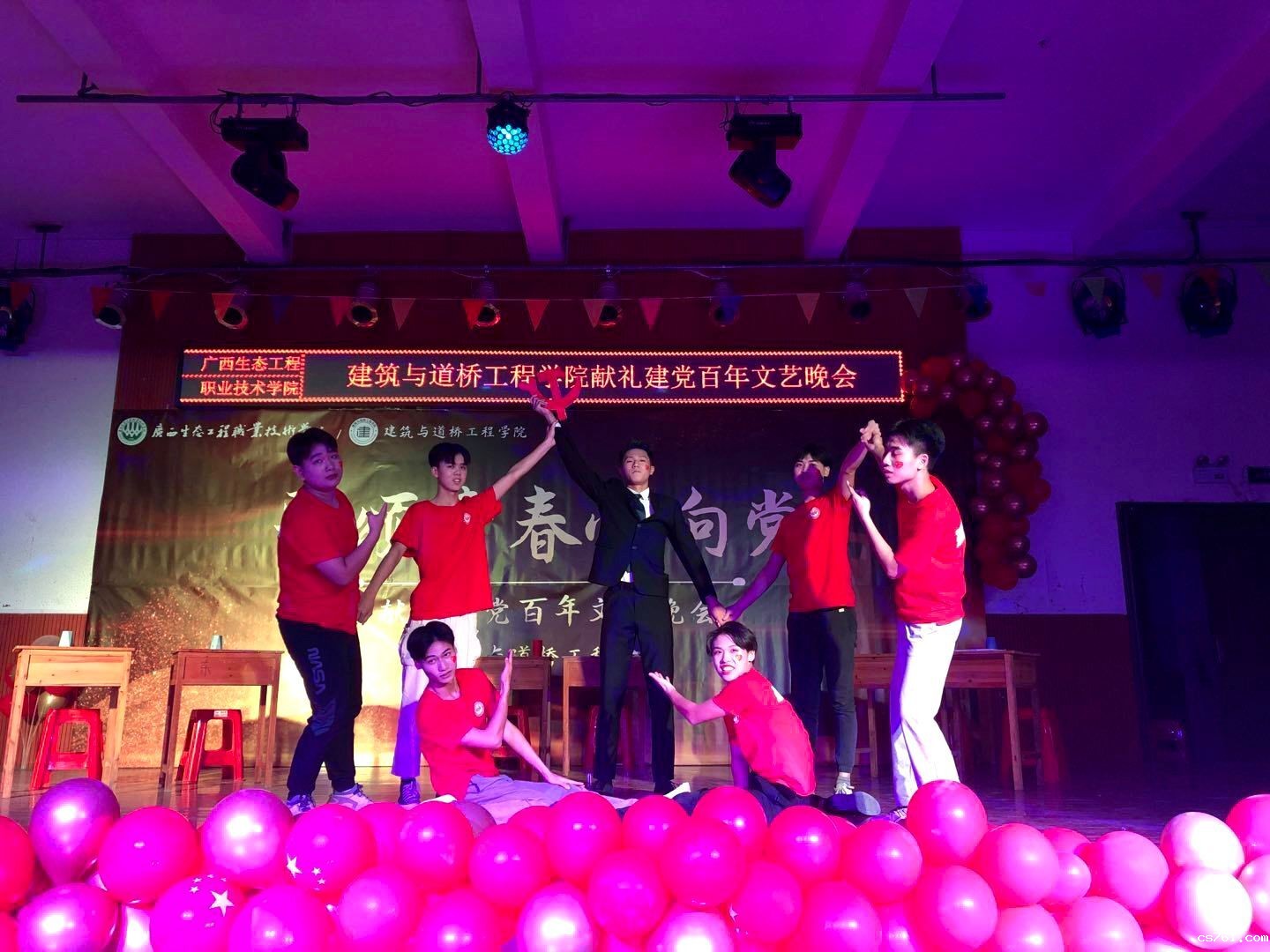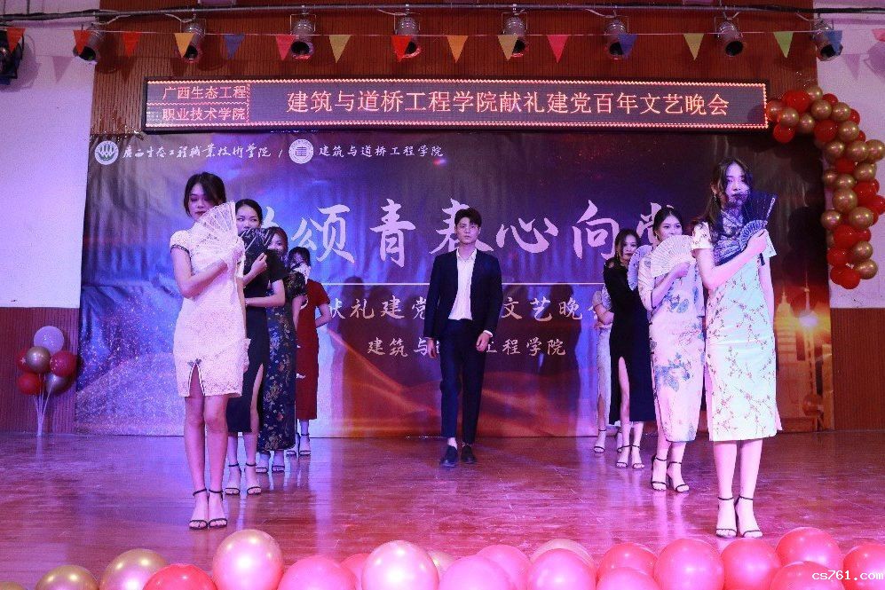 为热烈庆祝中国共产党建党100周年,歌颂党的丰功伟绩,继承和发扬党的优良传统和作风。建筑与道桥工程学院于4月29日19:00在大学生俱乐部举办主题为“歌颂青春心向党”献礼建党百年文艺晚会。观看此次晚会的领导嘉宾有学校党委学生工作部部长冯光澍老师、副部长廖翠老师,建工学院党总支副书记姚紫燕老师、学生科科长黄耀业老师、团委书记梁银明老师、卢智玲老师、学院全体辅导员老师,以及各学院、学生会、社团的代表等,晚会现场座无虚席。