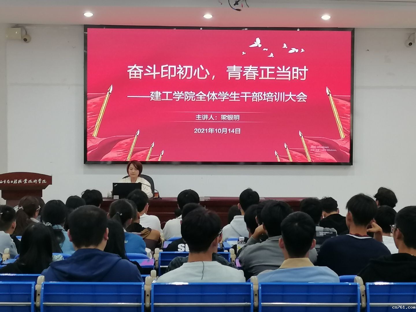 2021年10月15日14:30,建工学院在第一报告厅开展“奋斗印出心,青春正当时”为主题的全体学生干部培训大会,建工学院团委书记梁银明、20级和21级全体学生干部236人参加了此次大会。