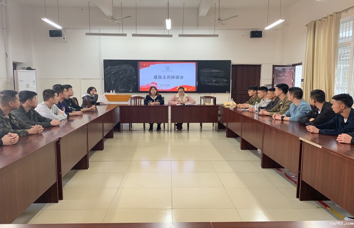 最后,姚紫燕副书记表示,入伍经历是人生中宝贵的财富,并向退伍学生提出三点希望:一是希望全体退役学生返校后不忘从军初心,尽快转变角色,适应学校。二是发挥“军人本色、退伍不褪色”、“退伍不褪志”,把部队中“不怕苦,不怕累”的光荣传统和优良作风带进课堂、带到班级、带入校园,传递给身边更多的同学。三是希望退伍学生努力提升自己的综合素质能力,用实际行动和担当展现新时代大学生的风采,激励更多的学生刻苦学习、成长成才,为学校增光添彩,为民族富强和国家昌盛做出积极的更大的贡献。