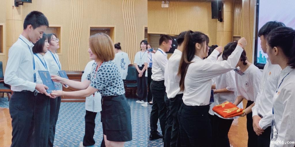 首先,建工学院学生会执行主席之一万东泽作团委、学生会、青年志愿者协会2021年工作报告,以视频形式展示了学生干部们一年来的“青春”。参会的老师们向建筑与道桥工程学院团委、学生会、青年志愿者协会20年级学生干部颁发了聘书;20级的学生干部为21级新上任的代理干部进行了授旗、授牌;随后,新任全体学生干部进行集体宣誓。