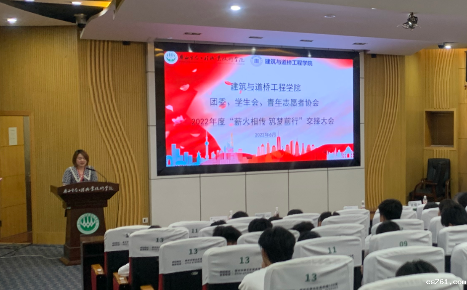 2022年6月27日晚上19:00,建筑与道桥工程学院在西区第二报告厅举行2020-2021届团委、学生会、青年志愿者协会工作交接大会。学院学生科科长黄耀业、团委书记梁银明、辅导员李长健、温晓、许秀宁、李雨珈老师,校级、各二级学院学生组织代表以及建筑与道桥工程学院团委、学生会、青年志愿者协会全体成员参加了此次交接大会。