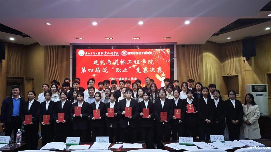 11月29日,建筑与道桥工程学院在学校青山报告厅举行第四届说“职业”竞赛决赛,本次竞赛由“沐心”辅导员工作室承办。学院党总支书记、院长肖万娟,专业负责人覃玉格,《职业发展与就业指导》任课教师路杨、梁小连、岑柳婷、郝宇茜担任比赛评委。
