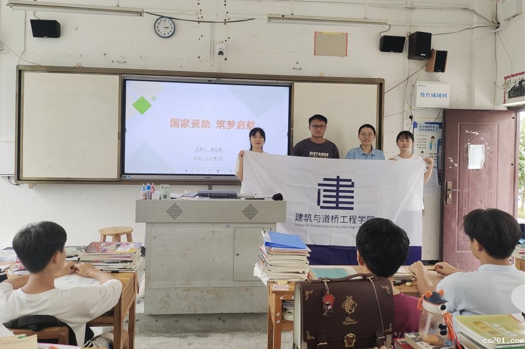 为进一步加强国家资助政策宣传力度,充分发挥资助育人功能,建筑与道桥工程学院组织成立资助宣讲团,进入课堂、回到家乡、走进母校,进行了一系列宣传活动,充分发挥其政策传播与励志引领作用。