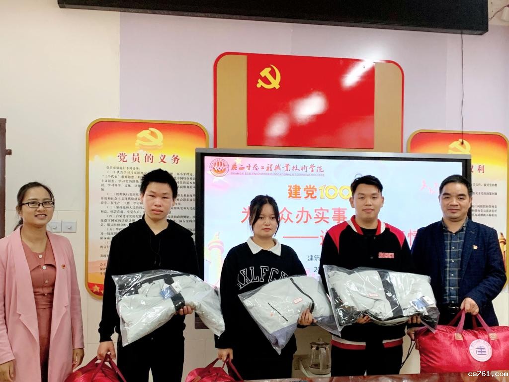学院领导班子与贫困学生代表开展面对面交流、心贴心解难、手拉手帮扶,并与他们谈心,不断给予他们温暖和鼓励,鼓励他们自强不息,叮嘱他们要树立信心,把暂时的困难当做学习的动力,树立目标,坚信自己一定能走出困境,努力学习,掌握专业技能本领。告知他们,学校的老师们会作为他们生活的知心人、成长路上的引路人、心理健康的疏导人,在学校学习生活遇到困难要及时反馈,老师们会尽最大的努力给予帮助,帮助他们健康成长。随后给学生代表送上了尽心准备的暖心的衣服和棉被,在冬天即将来临的时刻送上最实在的温暖。