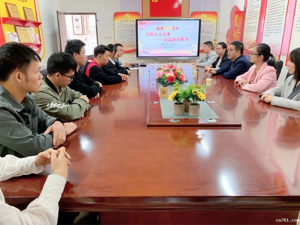 自深入开展“学党史”主题教育活动以来,建工学院全体教师通过持续开展党史学习教育,不断引导广大党员同志进一步加深对党的认识, 继承发扬党的光荣传统和优良作风, 增强党性观念和宗旨意识, 在做好本职工作、服务人民群众中创一流、 做表率,并积极开展我为群众办实事活动。2021年11月4日中午,建工学院在实训中心310开展主题为“送温暖传真情”的为群众办实事活动。学院党总支书记周全连,院长、党总支副书记肖万娟,党总支副书记姚紫燕以及老师代表、贫困学生代表共13人参加了此次活动。