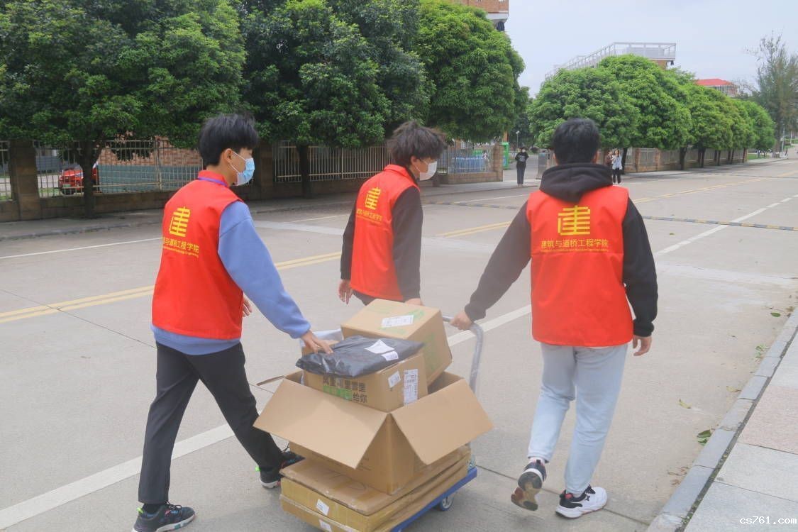 当前国内外疫情防控形势严峻复杂,学校严格按照上级要求实行封闭式管理,快递、外卖一律不得入校。为便于同学们安全领取前期的滞留快递,3月27日建工学院学生党支部与青年志愿协会积极践行雷锋精神主动请缨,对校门口滞留快递统一取回消毒后发放到同学手中。