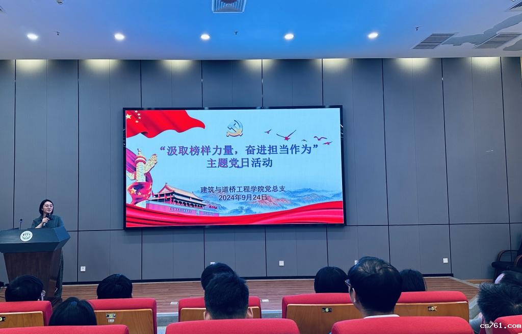 9月24日下午,建工学院党总支在图书馆树木报告厅开展“汲取榜样力量,奋进担当作为”主题党日活动。学院党总支全体党员参加会议,会议由覃诗涵主持。