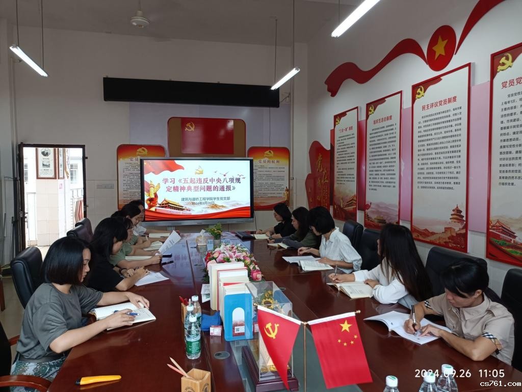 为常态长效深化中央八项规定精神,持续巩固深化党纪学习教育成果,进一步强化全体党员的纪律意识和规矩意识,2024年9月26日,建工学院学生党支部在西2教310党员活动室集中学习自治区纪委《五起违反中央八项规定精神典型问题的通报》。