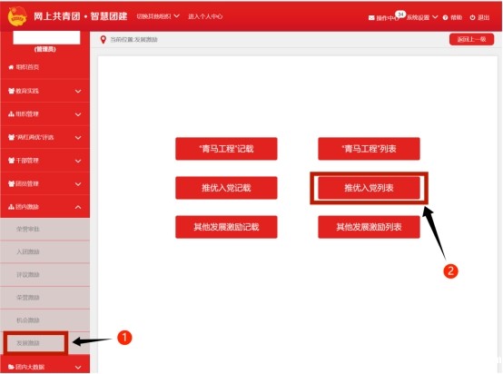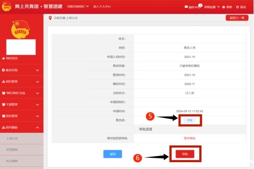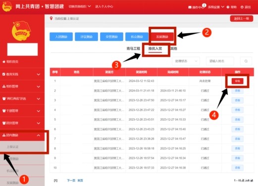 (1)点击“团内激励-上级认证-发展激励-推优入党-审批”。