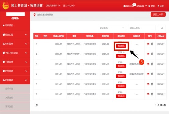 团支部管理员在更新推优入党状态后,二级学院团委管理员需及时在系统中审核,审核通过后生效。