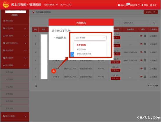 团员在推优入党过程中须根据实际,及时更新状态。团支部管理员需在“团员激励-发展激励-推优入党列表”中找到该团员,按照实际情况更新其状态。