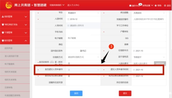 注意:若未先完成(1)-(2),则无法自动跳出“人员列表”“申请入党时间”。