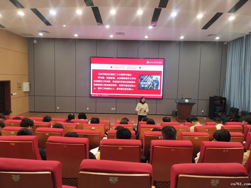 12月05日,建工学院在树人报告厅举办以“中国共产党的性质、宗旨和最高理想”为主题的专题讲座,邀请马克思主义学院韦莲青老师担任主讲人。全体入团积极分子参加了此次讲座。
