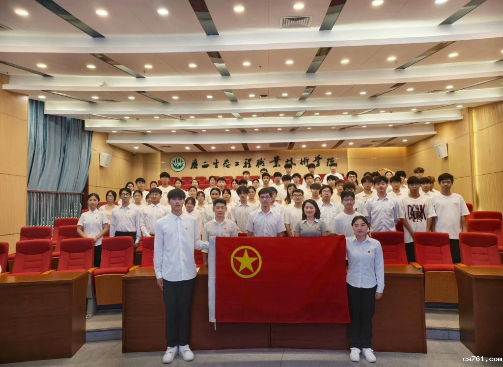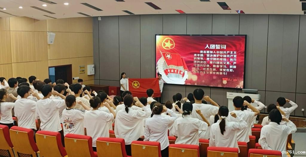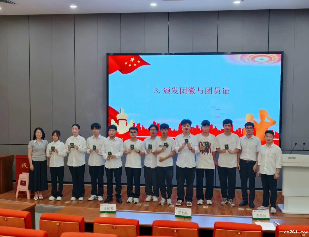 面对鲜艳的团旗,在梁银明老师的带领下,新团员们高举右拳,庄严宣誓:“我志愿加入中国共产主义青年团,坚决拥护中国共产党的领导……” 铿锵有力的誓言回荡在会场,展现出青年学子对共青团组织的无限忠诚和为共产主义事业奋斗的坚定决心。宣誓完毕后,新团员代表卢涛发言,他表示加入共青团是人生新的起点,今后将以团员的标准严格要求自己,努力学习,积极进取,用实际行动践行入团誓言,为团旗增光添彩。